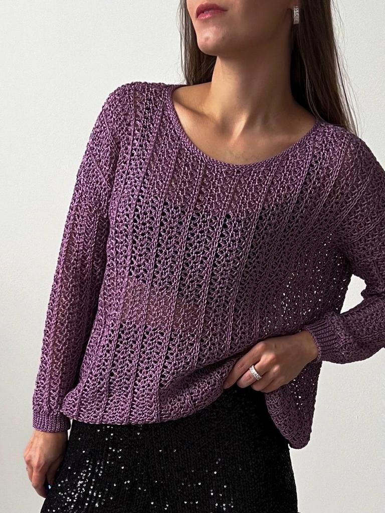 Стильный джемпер, связанный крючком в поперечной технике вязания